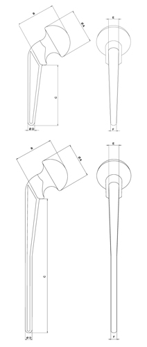 Spacer G Flat Stem przypomina spacer G, ale ma cieńszy i bardziej płaski trzpień, który łatwiej dopasowuje się do wąskich kanałów udowych. Górna częœć trzpienia została zaprojektowana tak, aby zabezpieczyć większy krętarz. Dostępna w 6 rozmiarach (3 rozmiary głowy ze standardowym trzpieniem i 3 rozmiary głowy z trzpieniem XL). Proksymalne cementowanie szyjki cementem kostnym jest obowiązkowe.